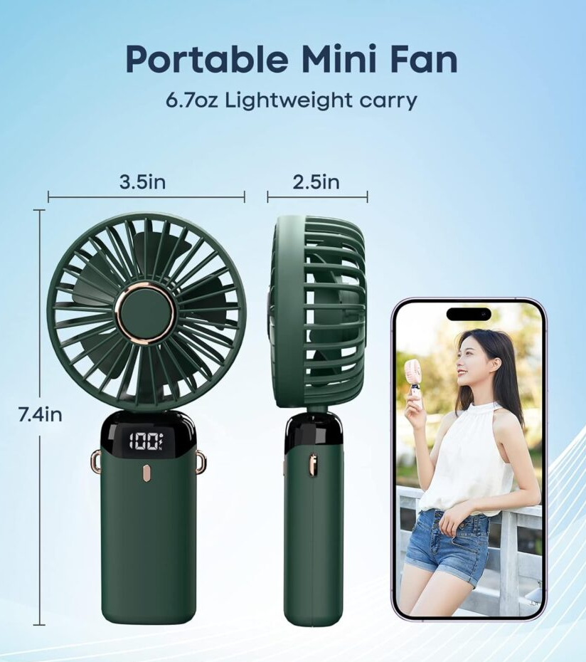 It is small but powerful, so you enjoy strong airflow without carrying a big fan. The rechargeable battery saves you money, so you don’t keep buying batteries.